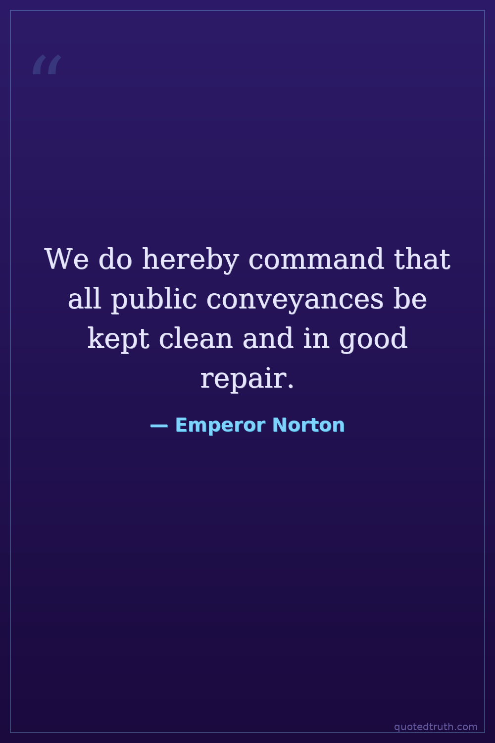We do hereby command that all public conveyances be kept clean and in good repair.