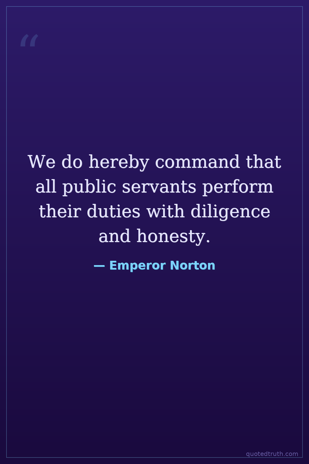 We do hereby command that all public servants perform their duties with diligence and honesty.