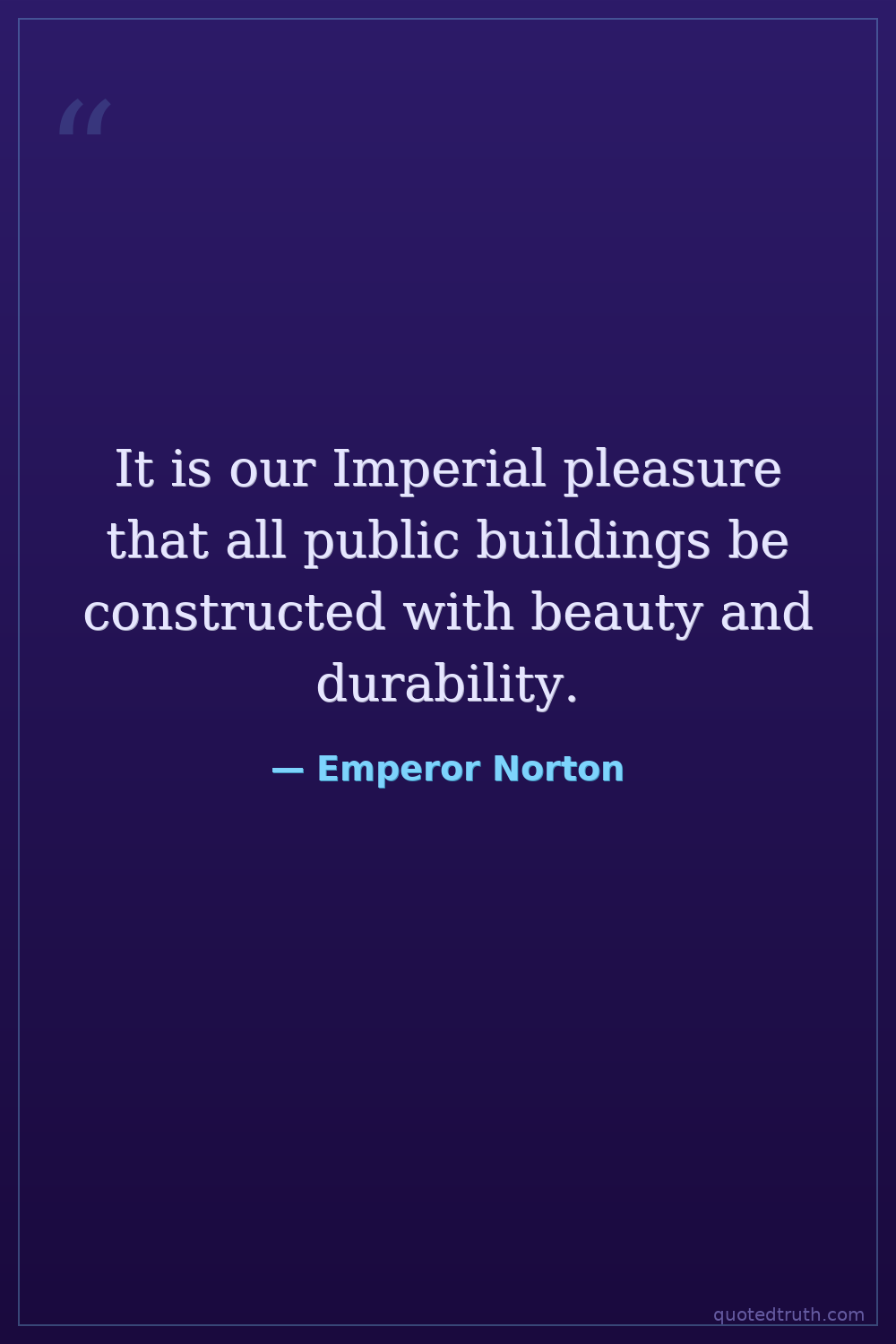 It is our Imperial pleasure that all public buildings be constructed with beauty and durability.