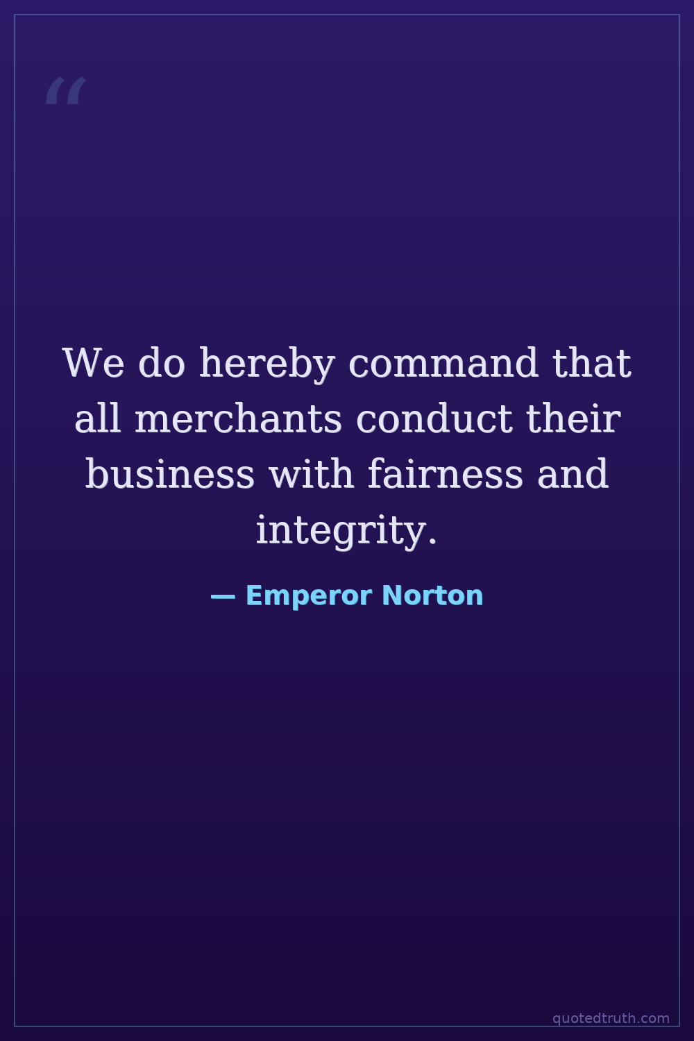 We do hereby command that all merchants conduct their business with fairness and integrity.