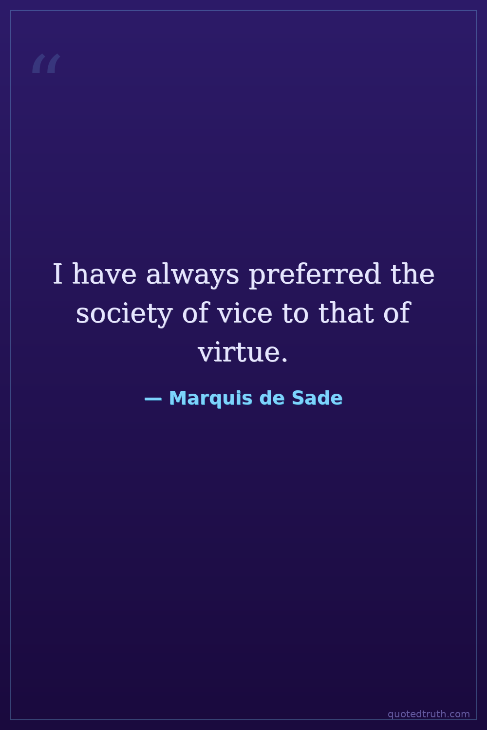 I have always preferred the society of vice to that of virtue.