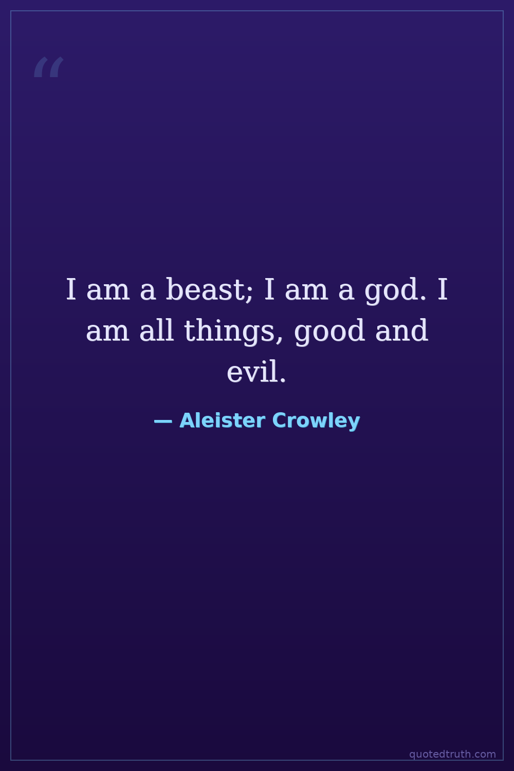 I am a beast; I am a god. I am all things, good and evil.