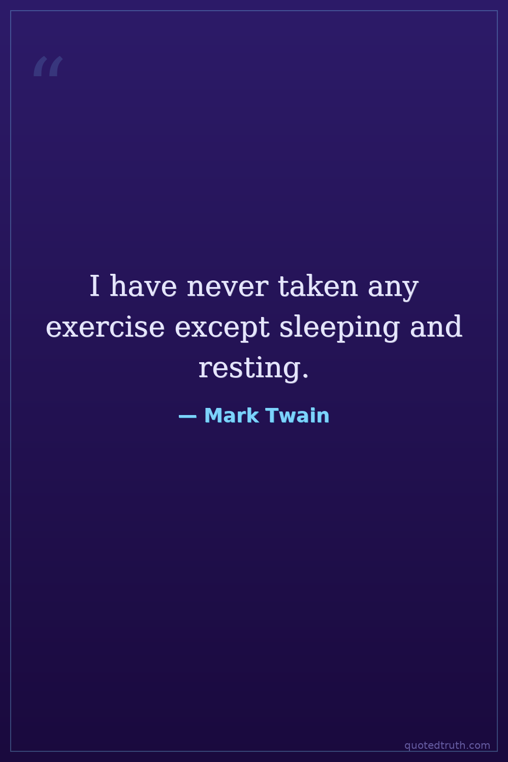 I have never taken any exercise except sleeping and resting.