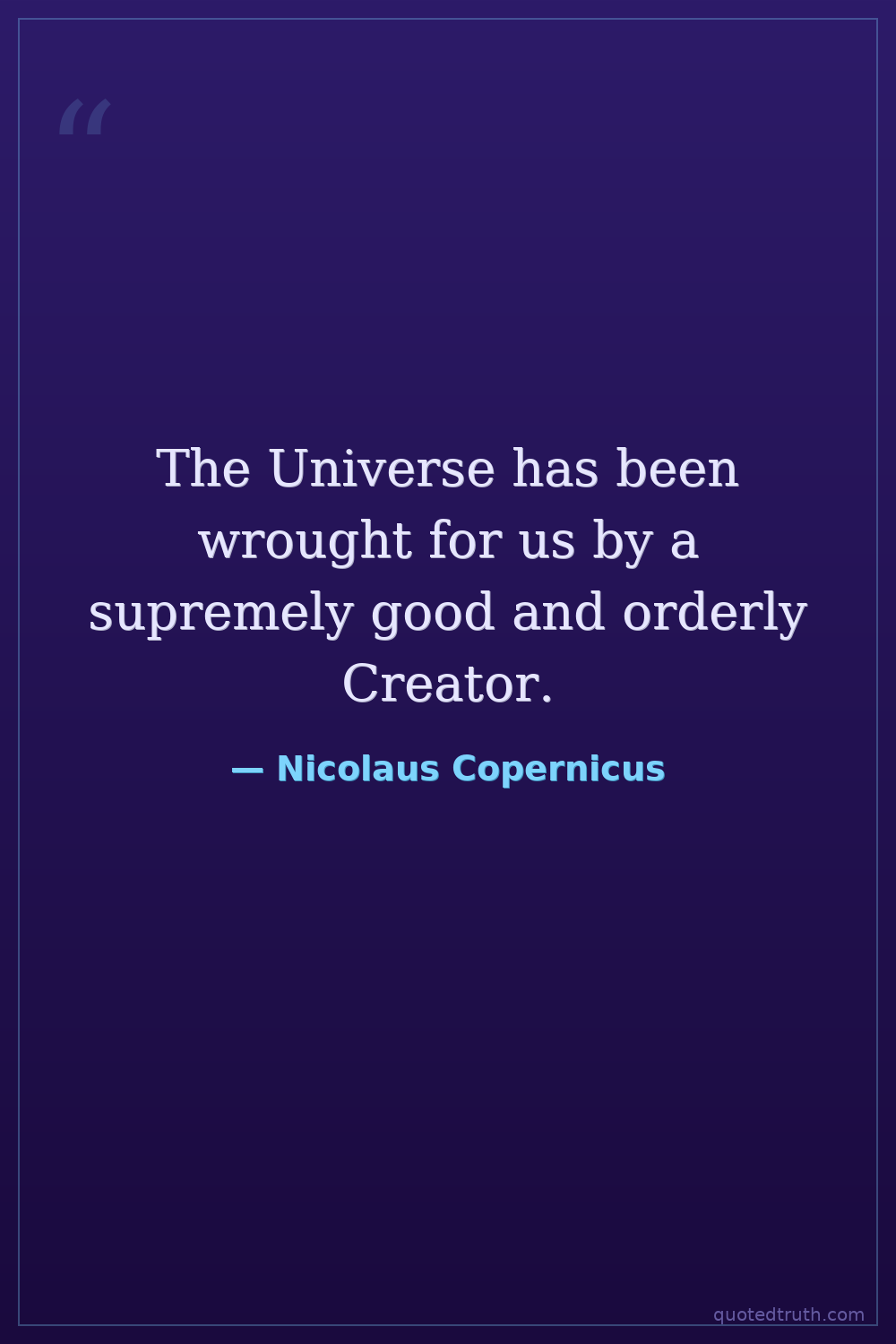 The Universe has been wrought for us by a supremely good and orderly Creator.