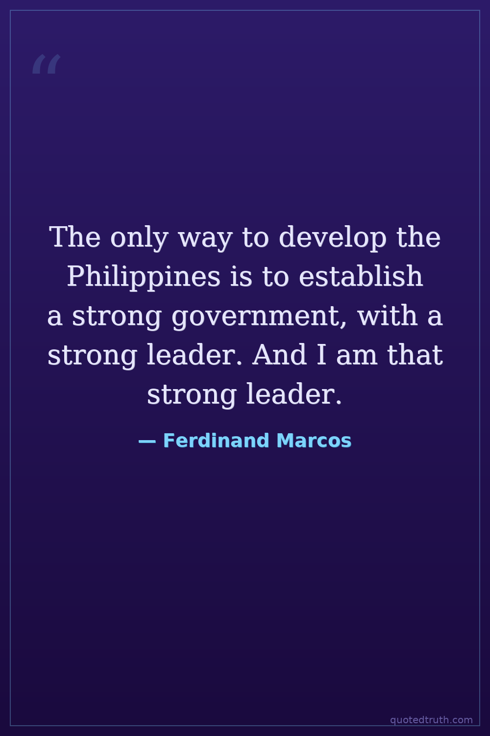 The only way to develop the Philippines is to establish a strong government, with a strong leader. And I am that strong leader.
