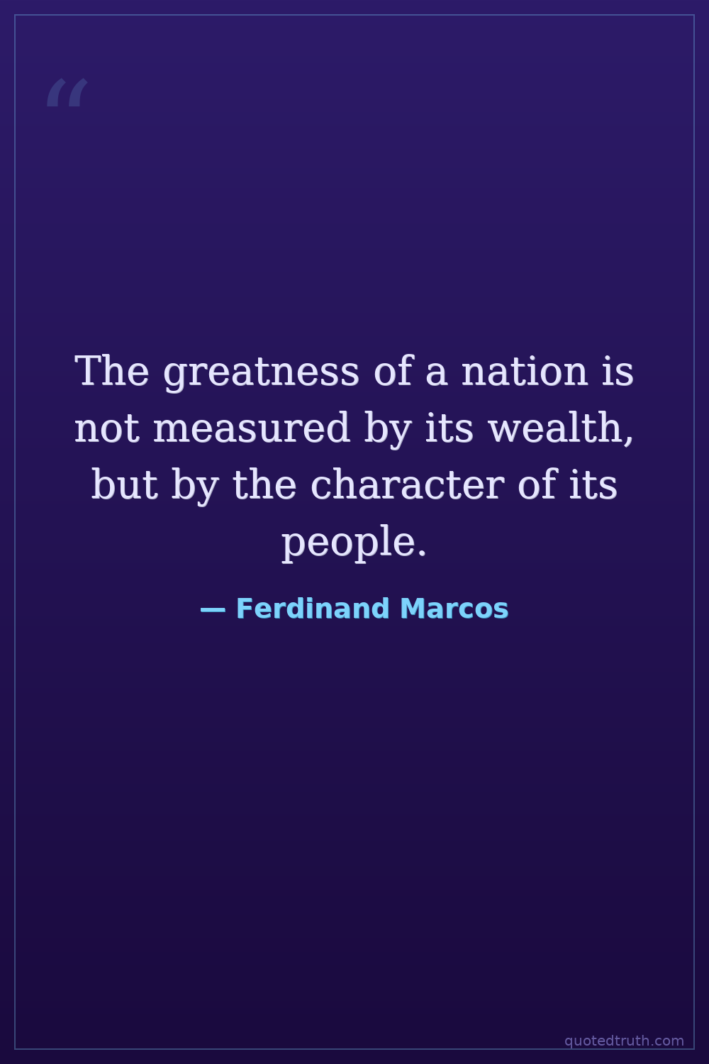 The greatness of a nation is not measured by its wealth, but by the character of its people.