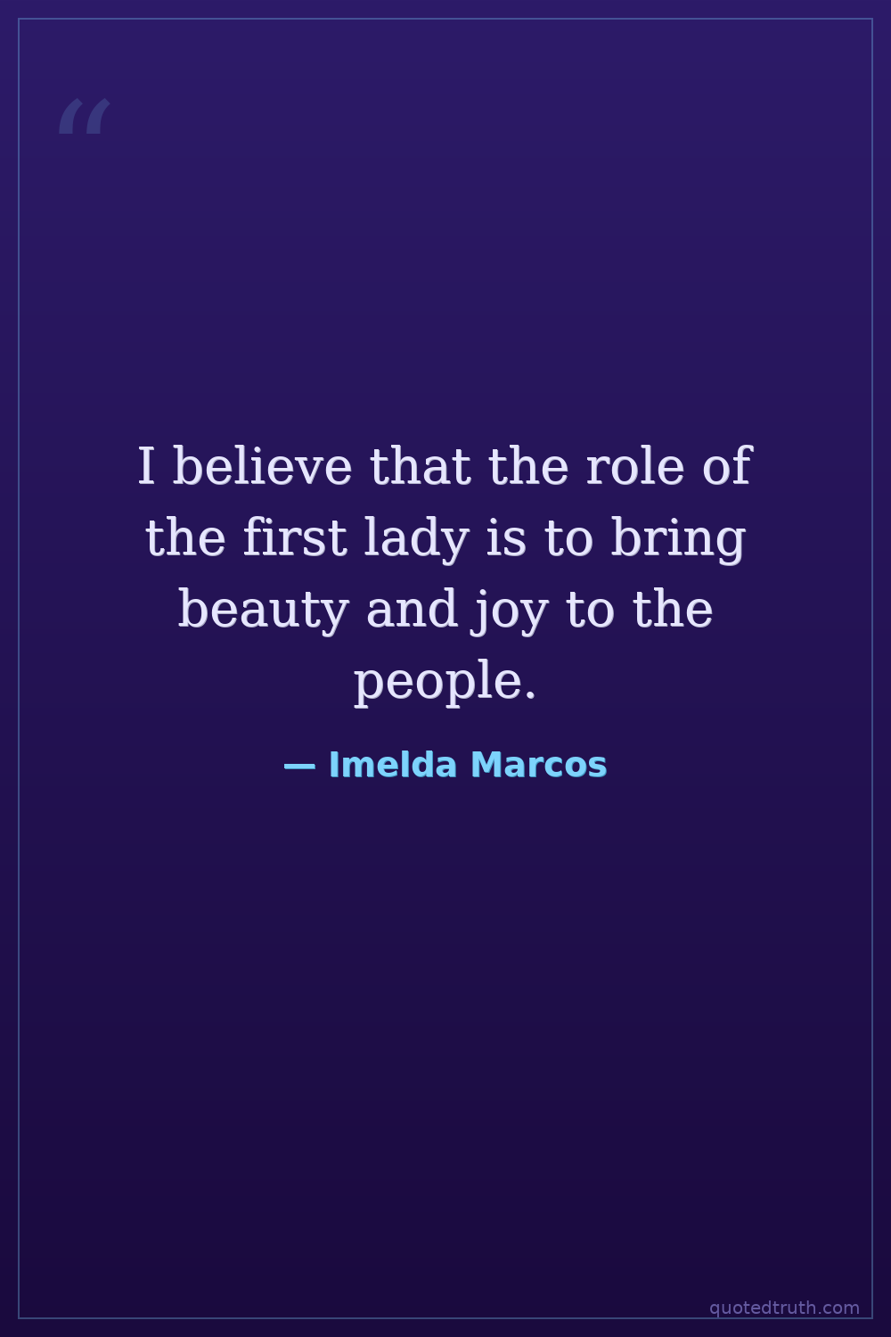 I believe that the role of the first lady is to bring beauty and joy to the people.