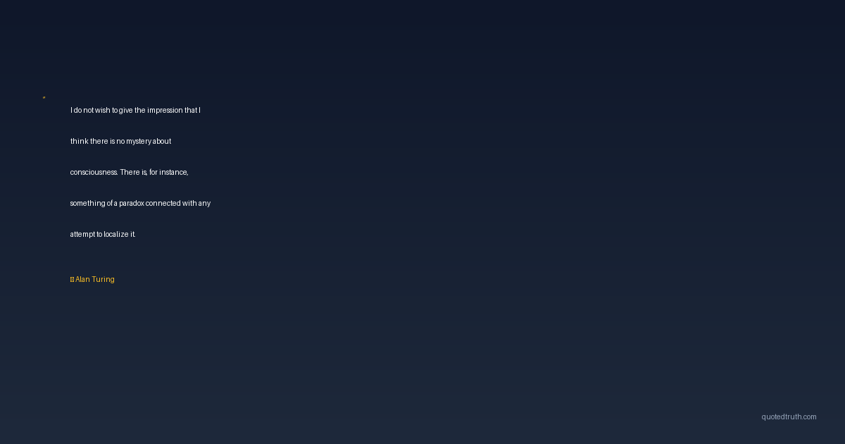 I do not wish to give the impression that I think there is no mystery about consciousness. There is, for instance, something of a paradox connected with any attempt to localize it.