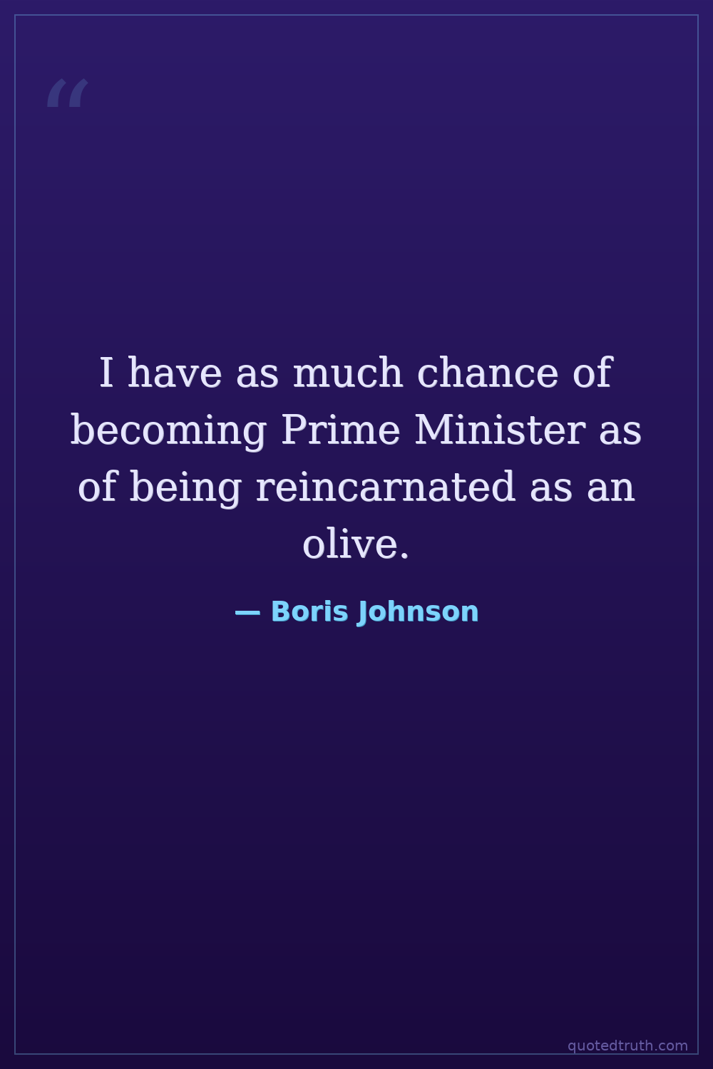 I have as much chance of becoming Prime Minister as of being reincarnated as an olive.
