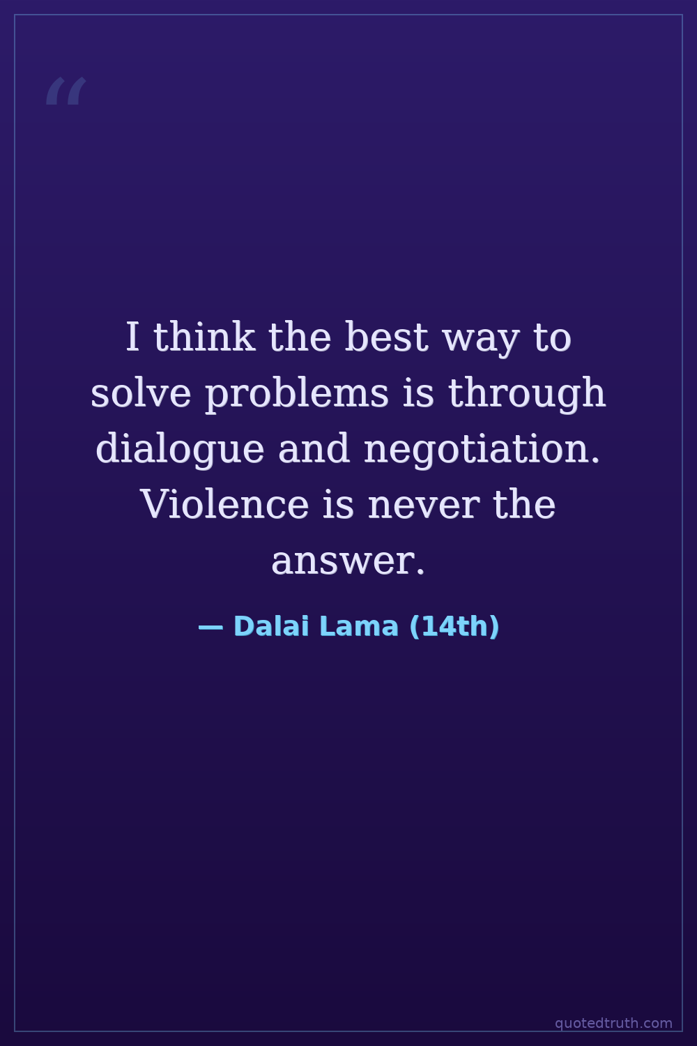 I think the best way to solve problems is through dialogue and negotiation. Violence is never the answer.