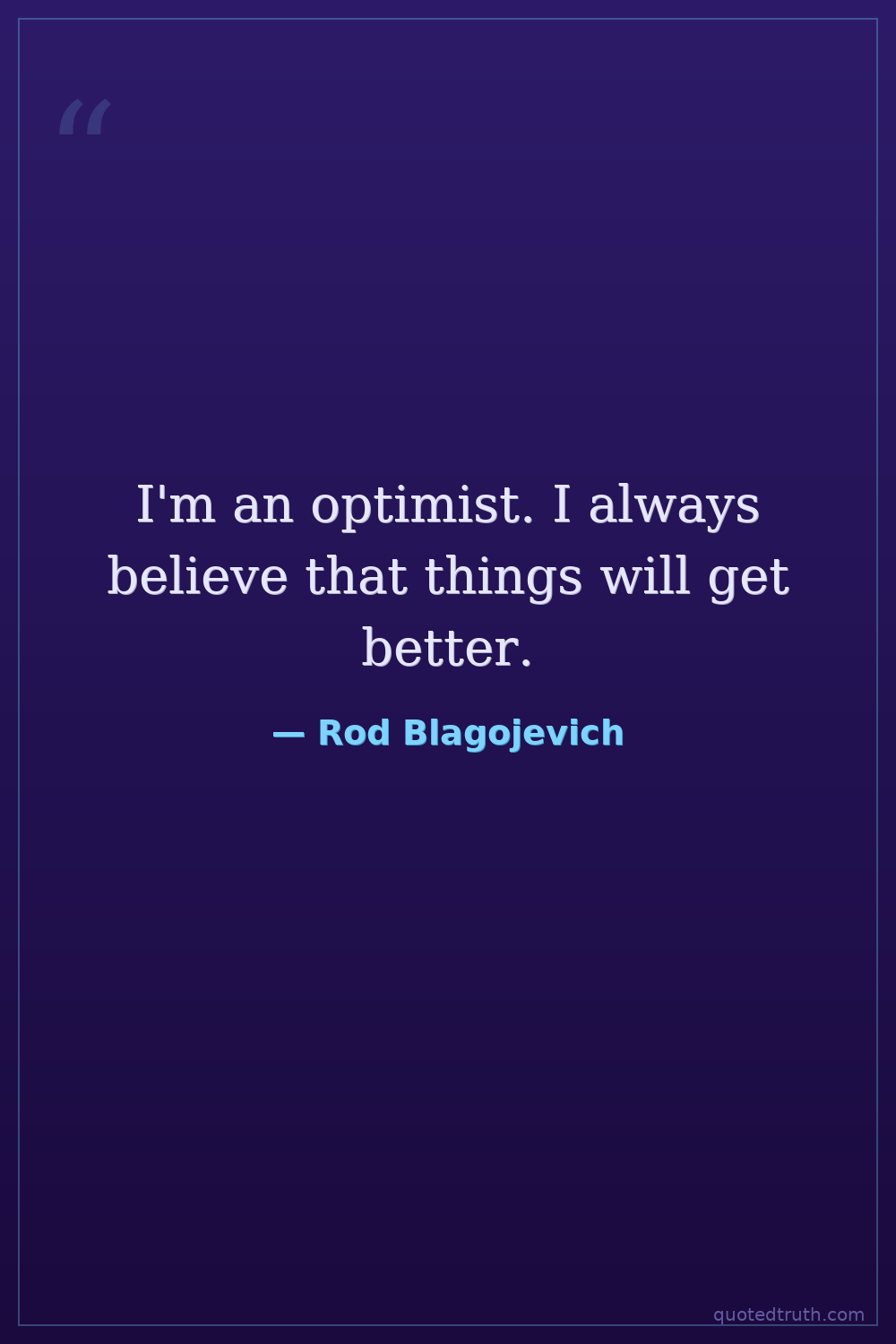 I'm an optimist. I always believe that things will get better.