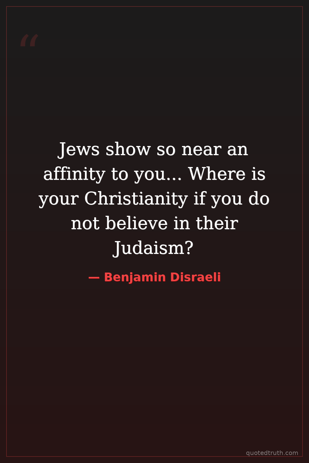 Jews show so near an affinity to you... Where is your Christianity if you do not believe in their Judaism?