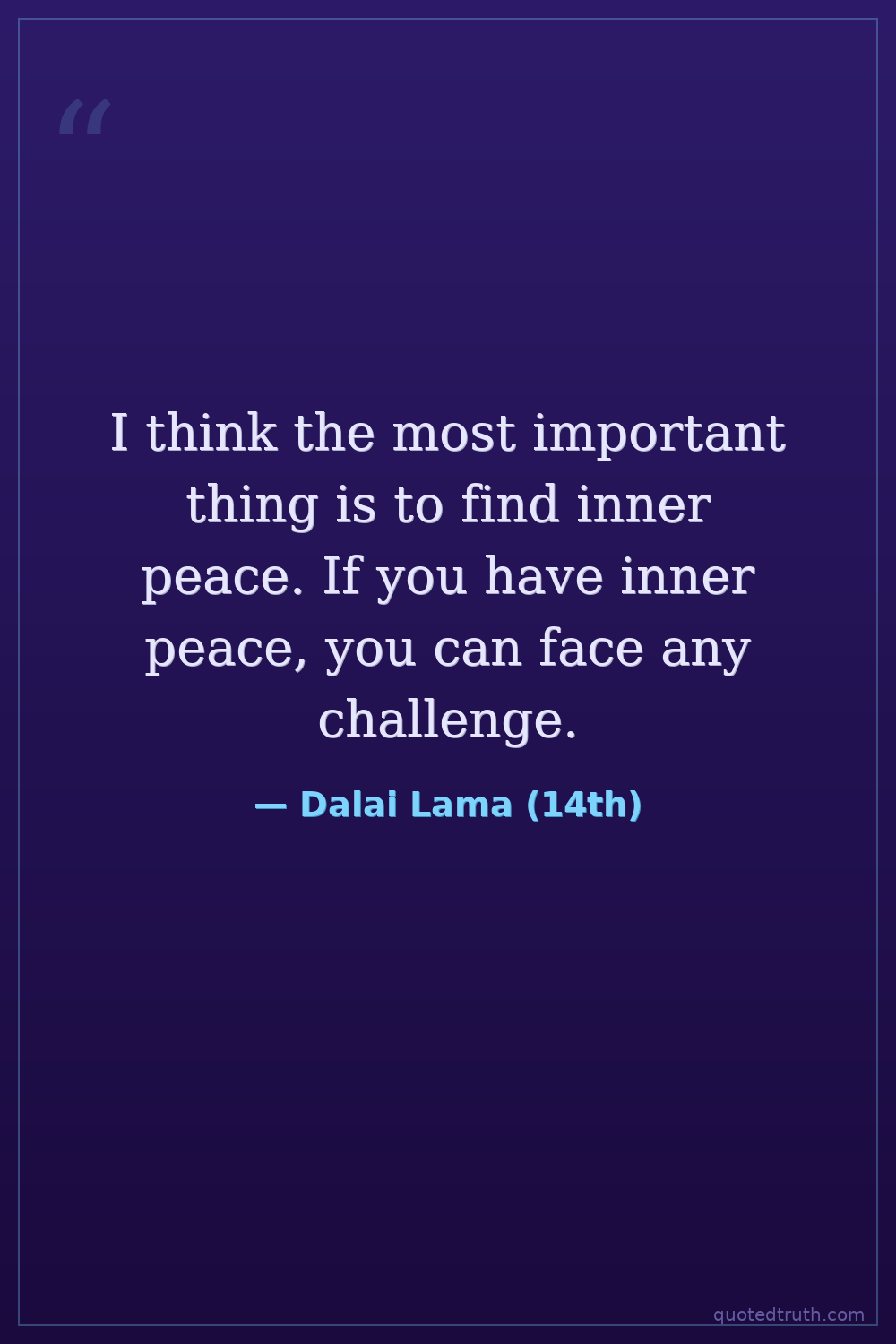 I think the most important thing is to find inner peace. If you have inner peace, you can face any challenge.