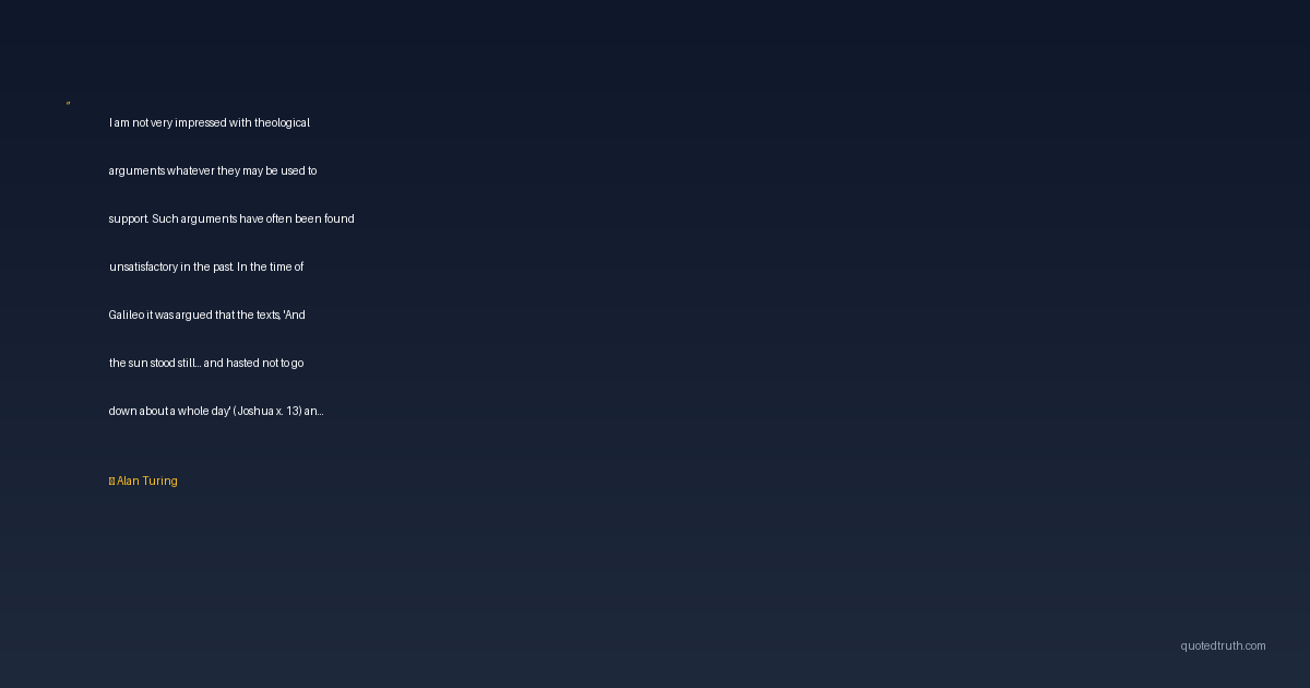 I am not very impressed with theological arguments whatever they may be used to support. Such arguments have often been found unsatisfactory in the past. In the time of Galileo it was argued that the texts, 'And the sun stood still... and hasted not to go down about a whole day' (Joshua x. 13) and 'He laid the foundations of the earth, that it should not move at any time' (Psalm cv. 5) were an adequate refutation of the Copernican theory.