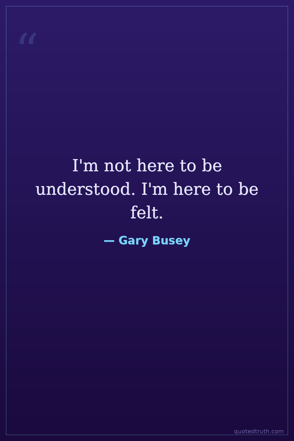 I'm not here to be understood. I'm here to be felt.