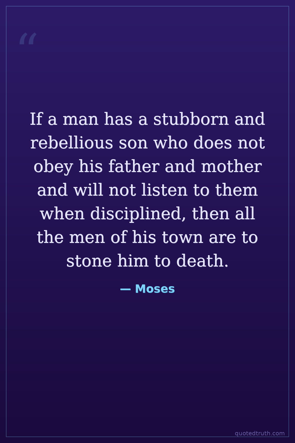If a man has a stubborn and rebellious son who does not obey his father and mother and will not listen to them when disciplined, then all the men of his town are to stone him to death.