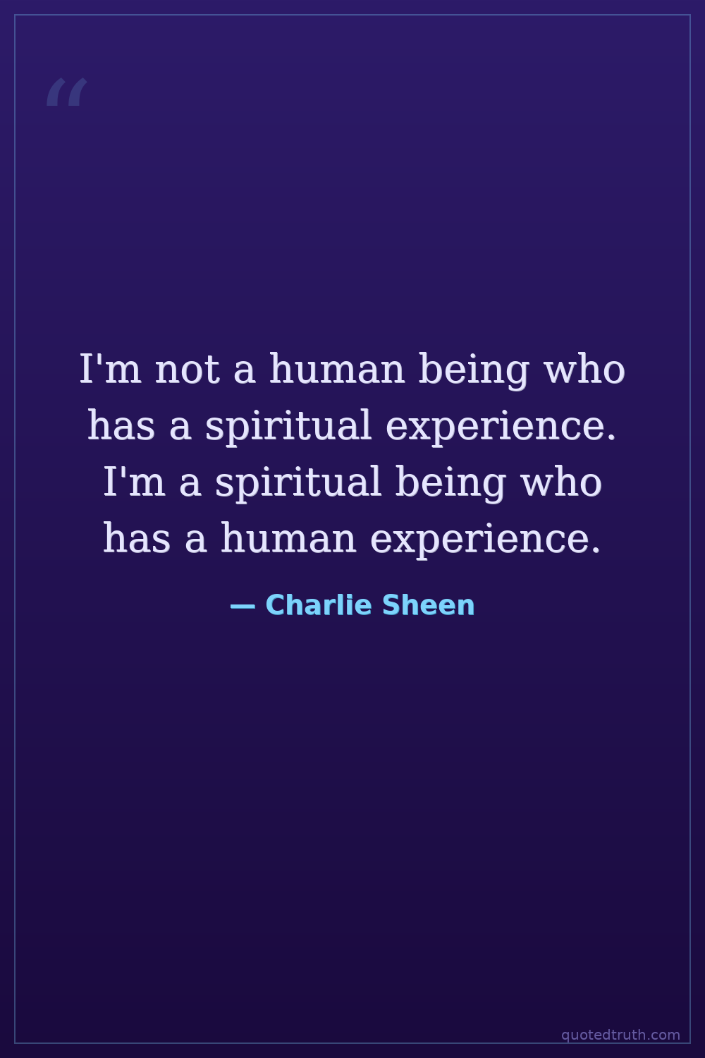 I'm not a human being who has a spiritual experience. I'm a spiritual being who has a human experience.