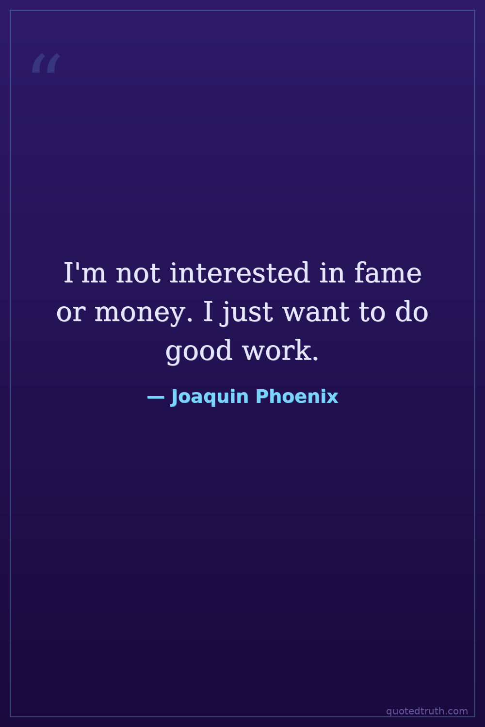 I'm not interested in fame or money. I just want to do good work.