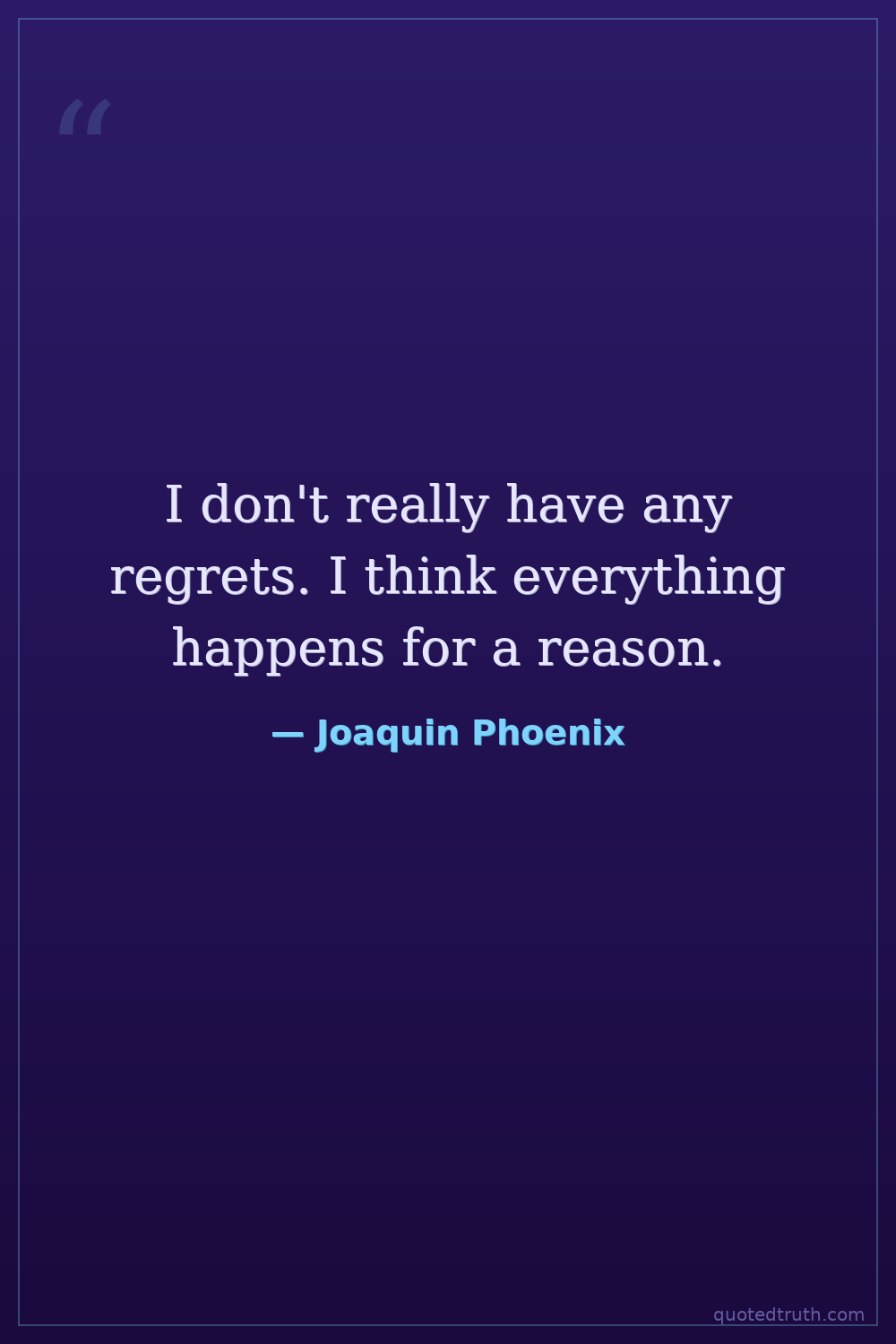 I don't really have any regrets. I think everything happens for a reason.