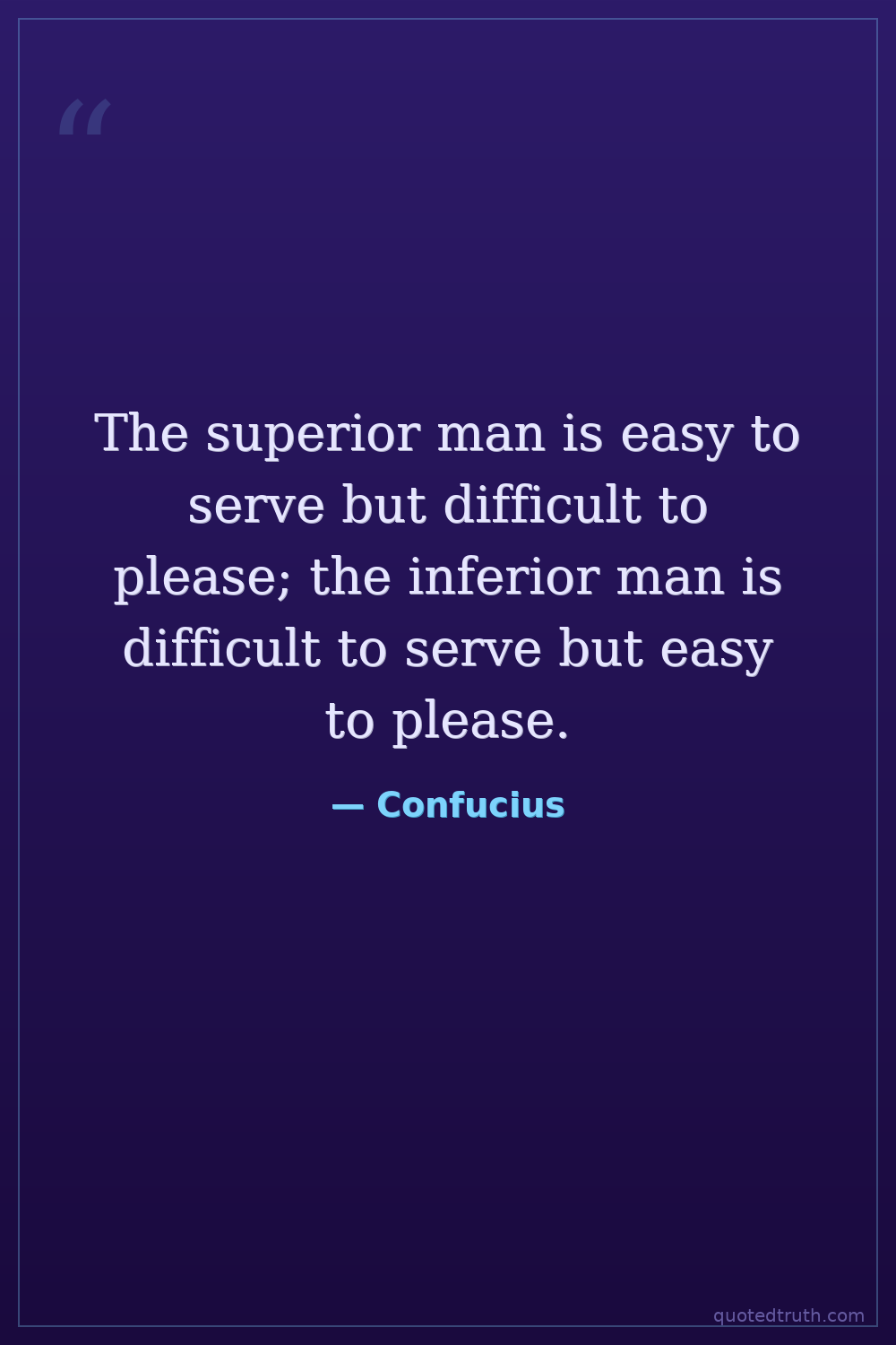 The superior man is easy to serve but difficult to please; the inferior man is difficult to serve but easy to please.