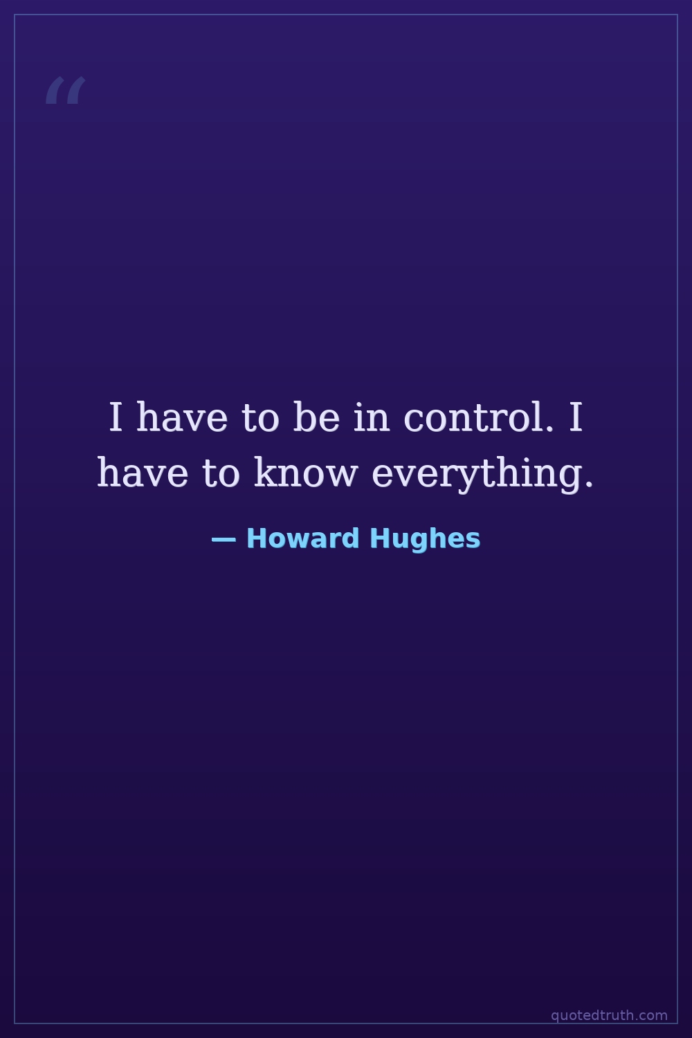 I have to be in control. I have to know everything.