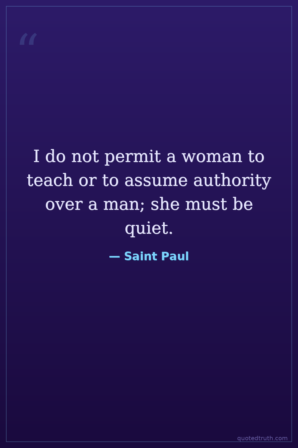 I do not permit a woman to teach or to assume authority over a man; she must be quiet.