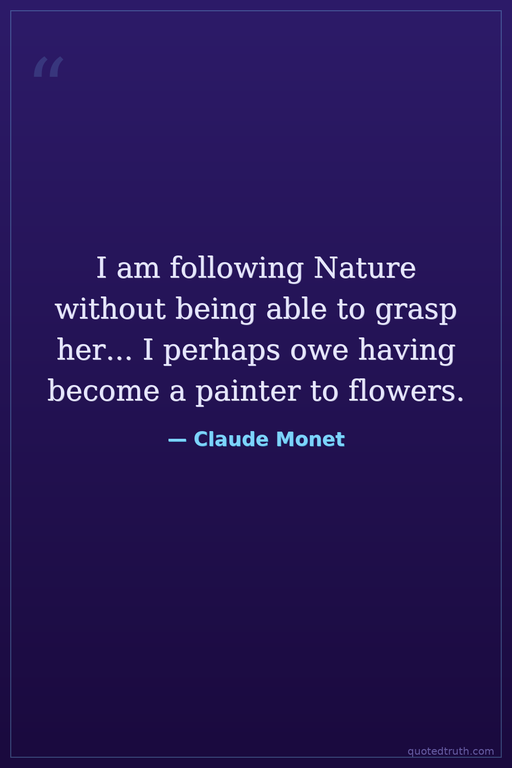 I am following Nature without being able to grasp her... I perhaps owe having become a painter to flowers.