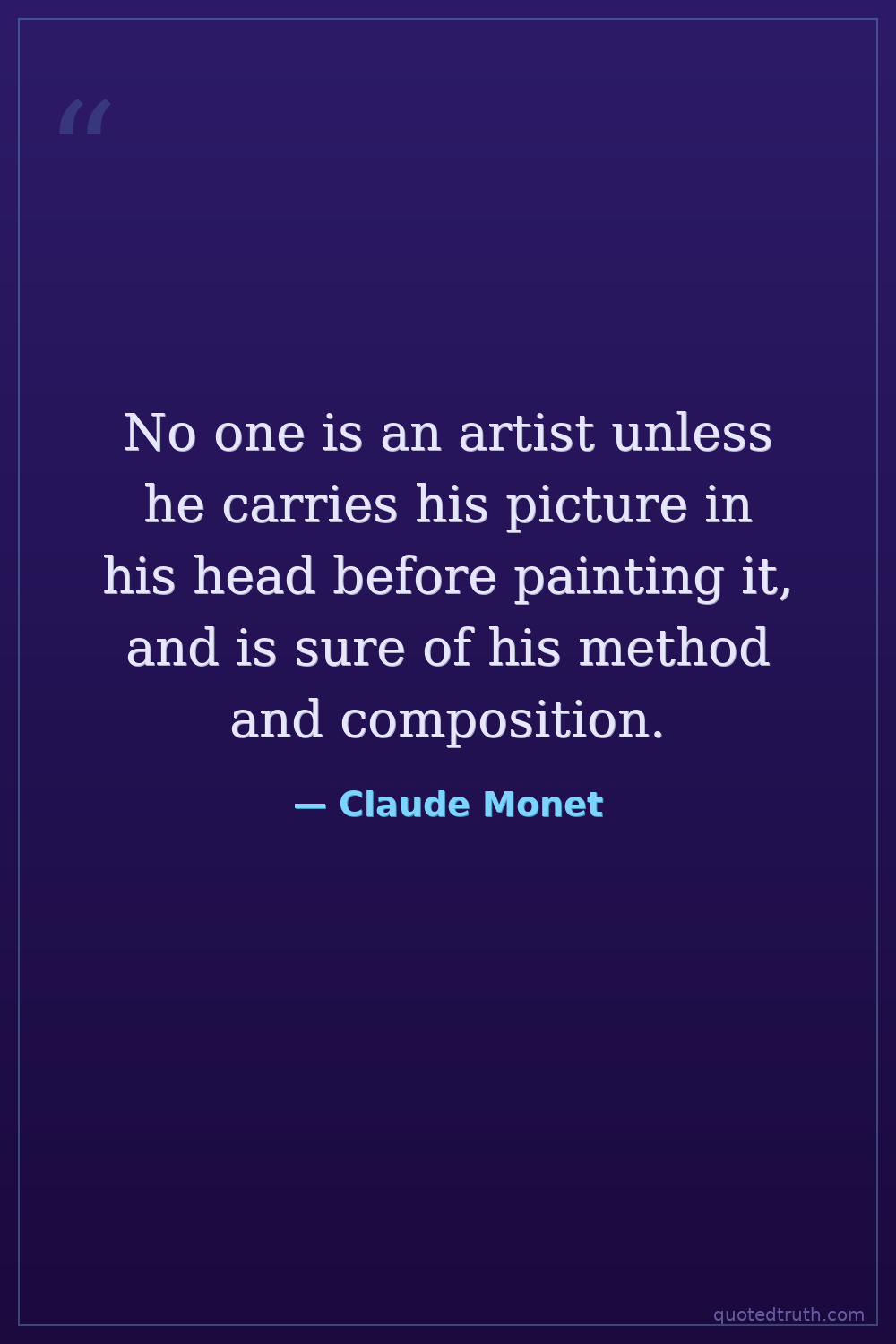 No one is an artist unless he carries his picture in his head before painting it, and is sure of his method and composition.
