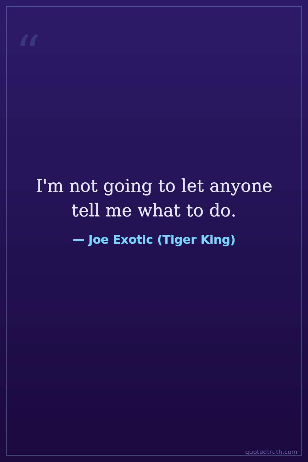 I'm not going to let anyone tell me what to do.