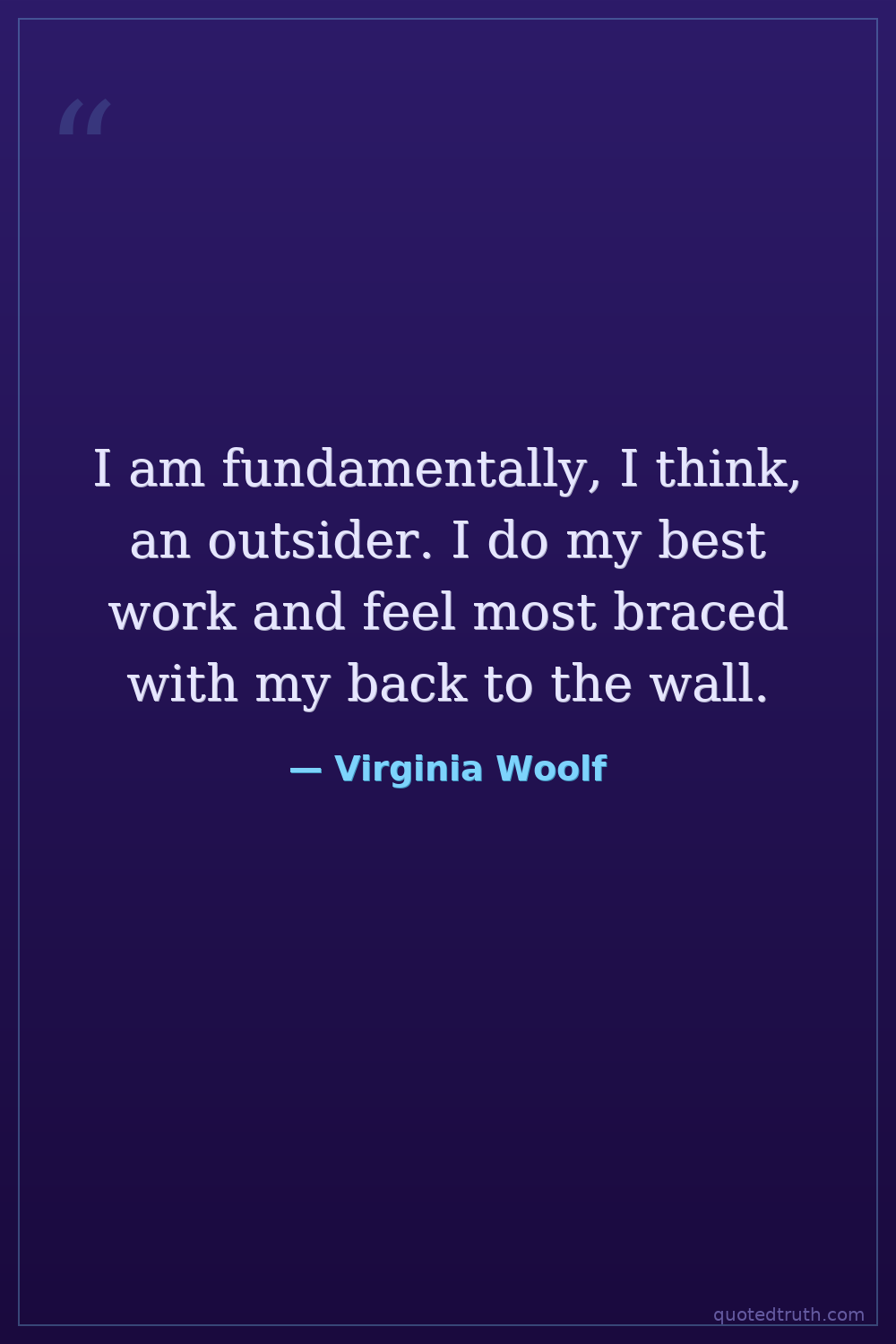 I am fundamentally, I think, an outsider. I do my best work and feel most braced with my back to the wall.