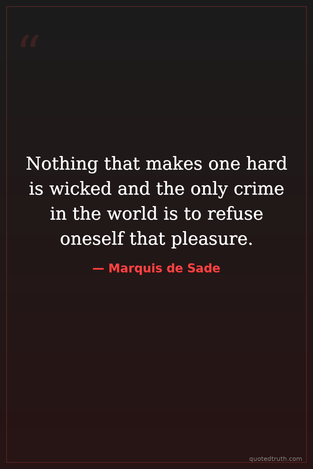 Nothing that makes one hard is wicked and the only crime in the world is to refuse oneself that pleasure.