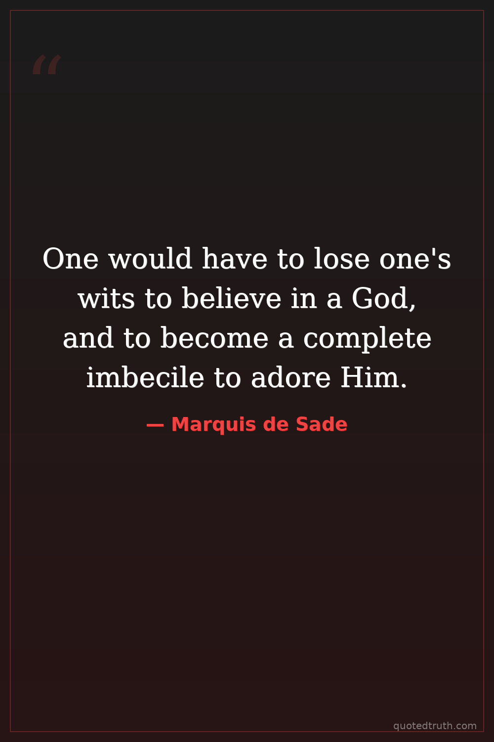 One would have to lose one's wits to believe in a God, and to become a complete imbecile to adore Him.