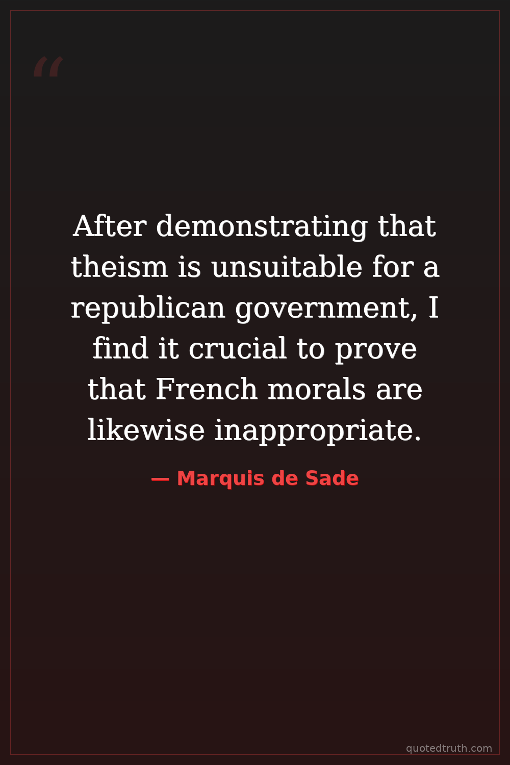 After demonstrating that theism is unsuitable for a republican government, I find it crucial to prove that French morals are likewise inappropriate.