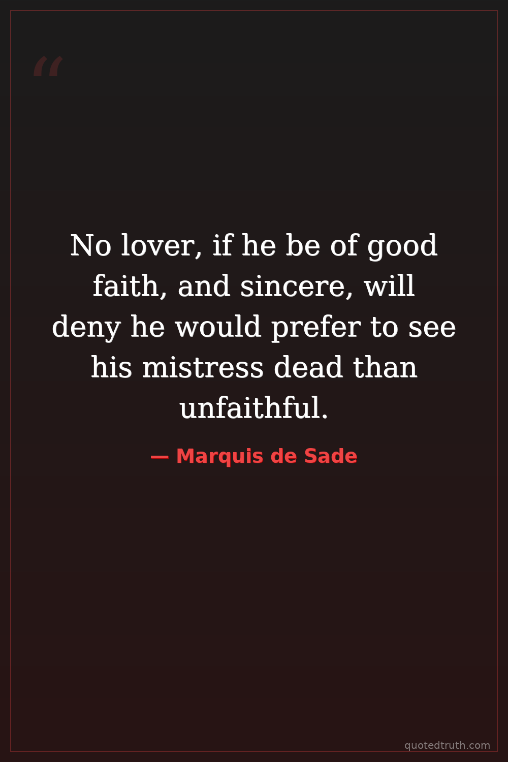 No lover, if he be of good faith, and sincere, will deny he would prefer to see his mistress dead than unfaithful.