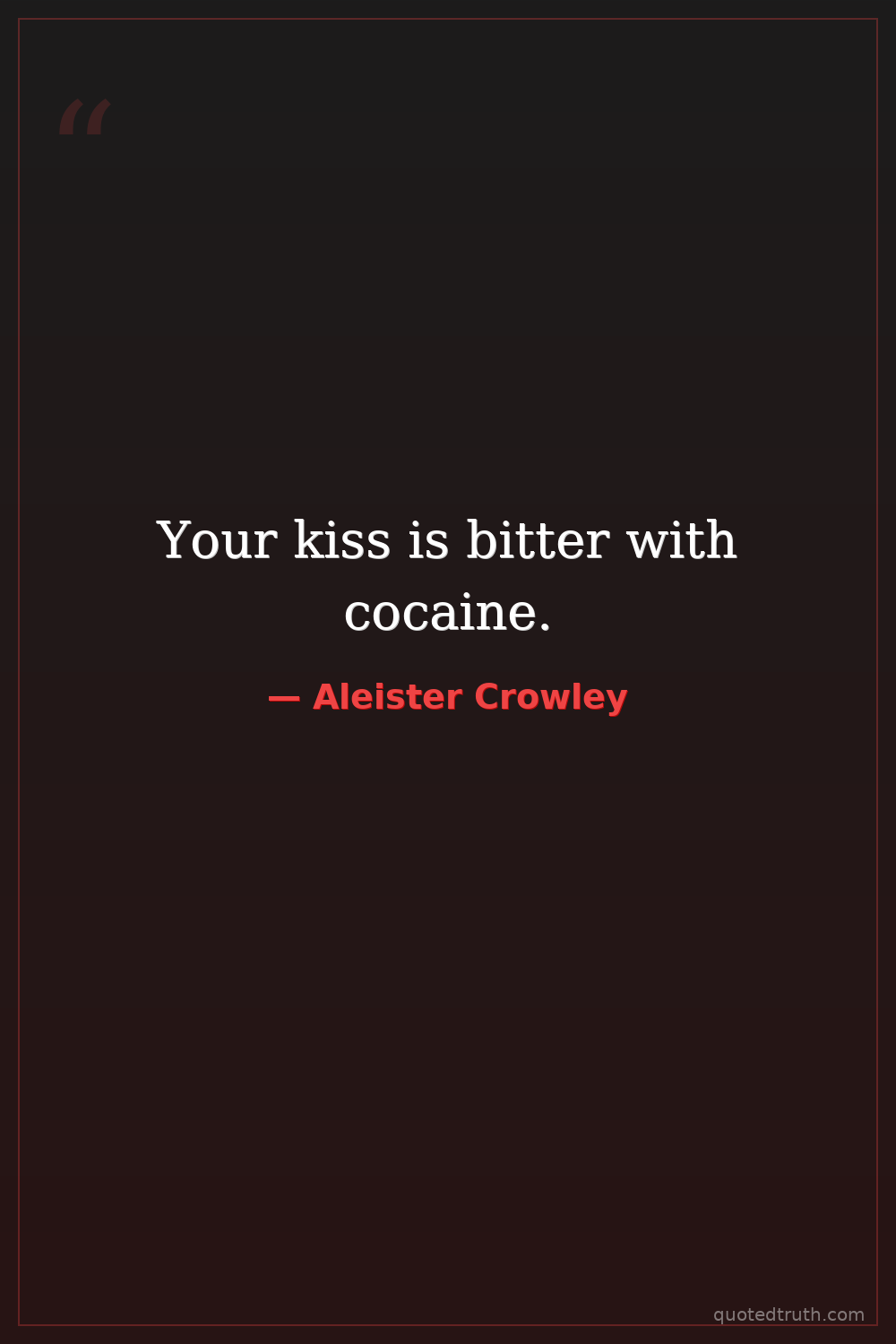 Your kiss is bitter with cocaine.