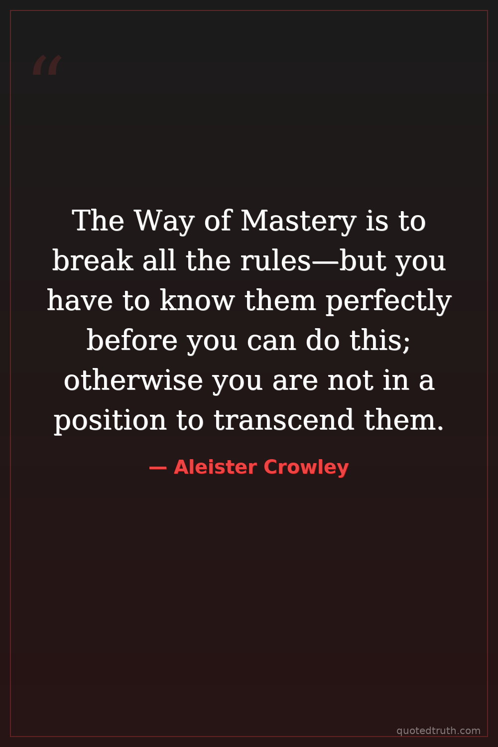 The Way of Mastery is to break all the rules—but you have to know them perfectly before you can do this; otherwise you are not in a position to transcend them.