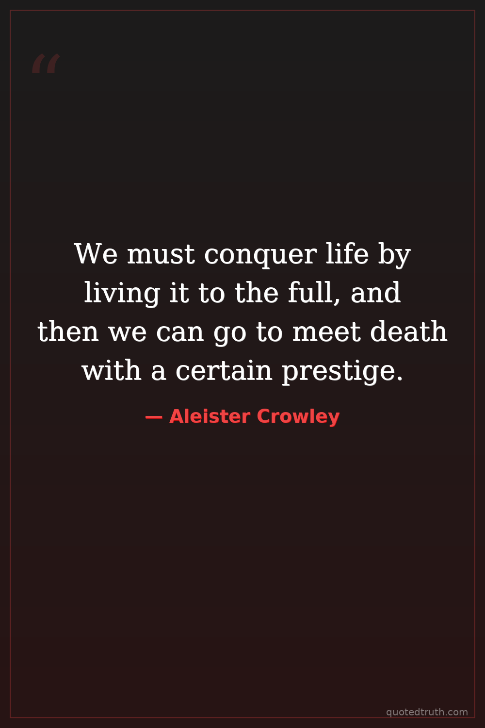 We must conquer life by living it to the full, and then we can go to meet death with a certain prestige.