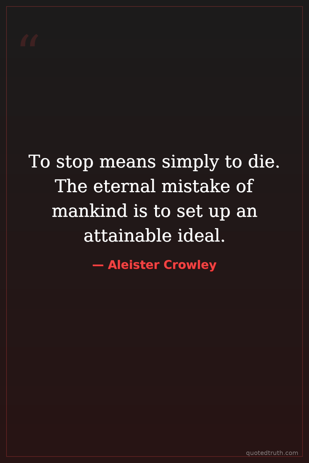 To stop means simply to die. The eternal mistake of mankind is to set up an attainable ideal.