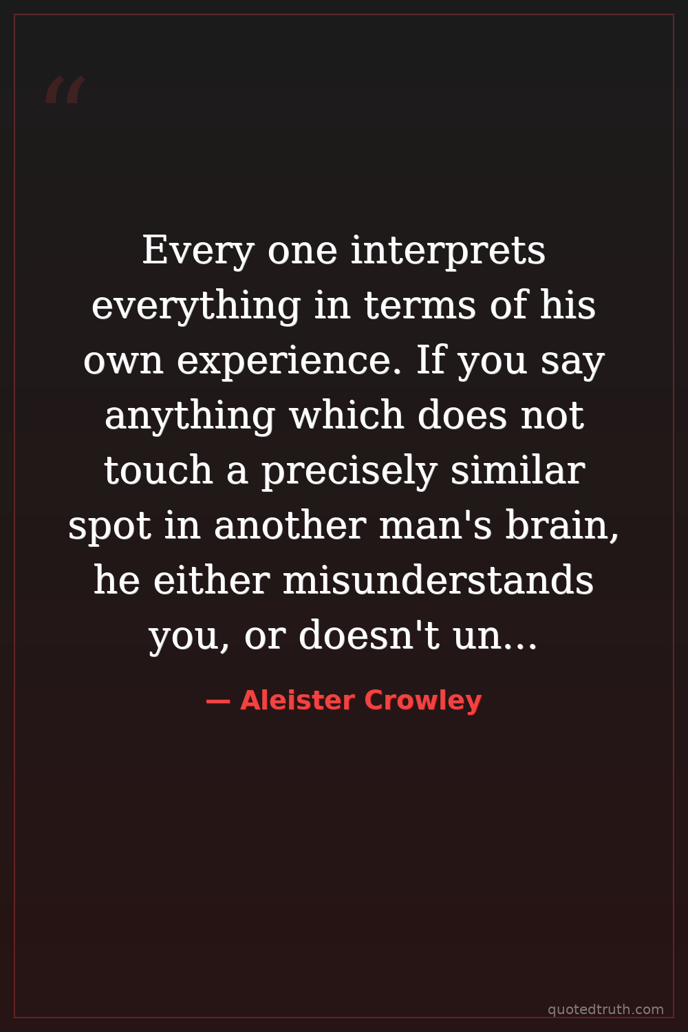 Every one interprets everything in terms of his own experience. If you say anything which does not touch a precisely similar spot in another man's brain, he either misunderstands you, or doesn't understand you at all.