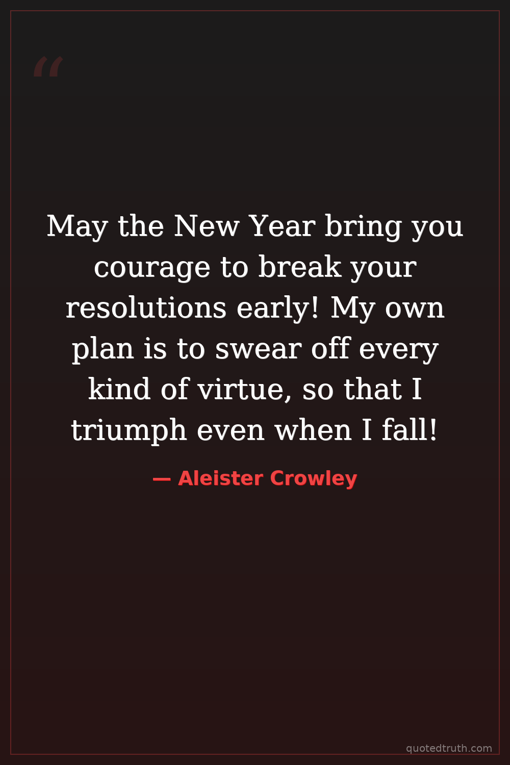 May the New Year bring you courage to break your resolutions early! My own plan is to swear off every kind of virtue, so that I triumph even when I fall!