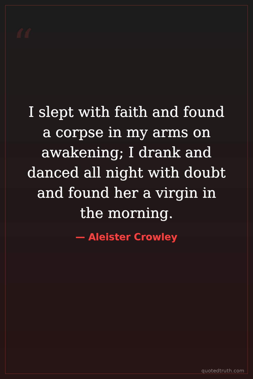 I slept with faith and found a corpse in my arms on awakening; I drank and danced all night with doubt and found her a virgin in the morning.