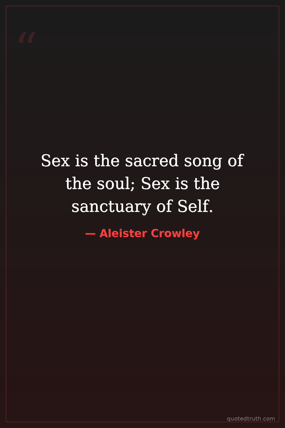 Sex is the sacred song of the soul; Sex is the sanctuary of Self.