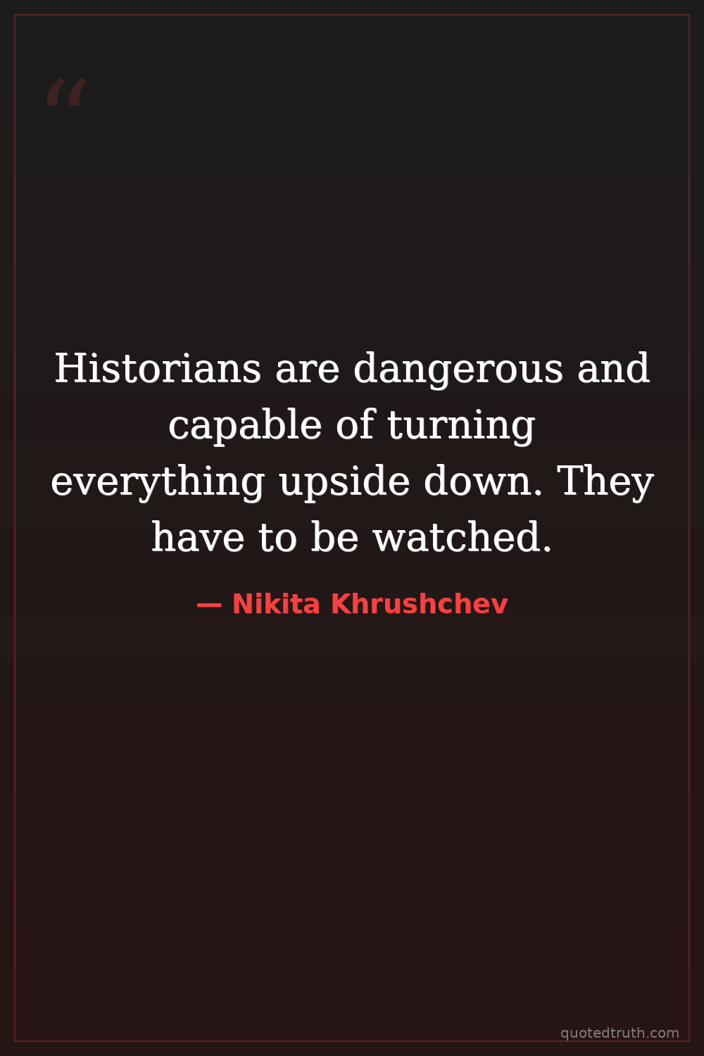 Historians are dangerous and capable of turning everything upside down. They have to be watched.