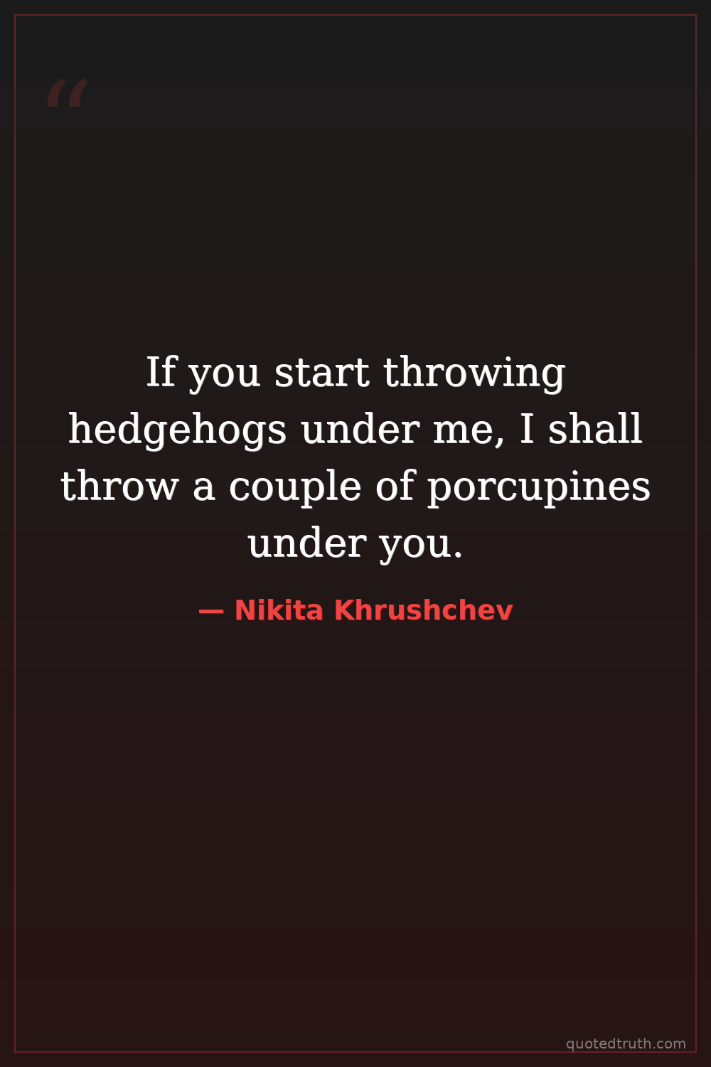 Controversial"If you don't like us, don't accept our invitations and don't invite us to come to see you. Whether you like it or not, history is on our side. We will bury you!"