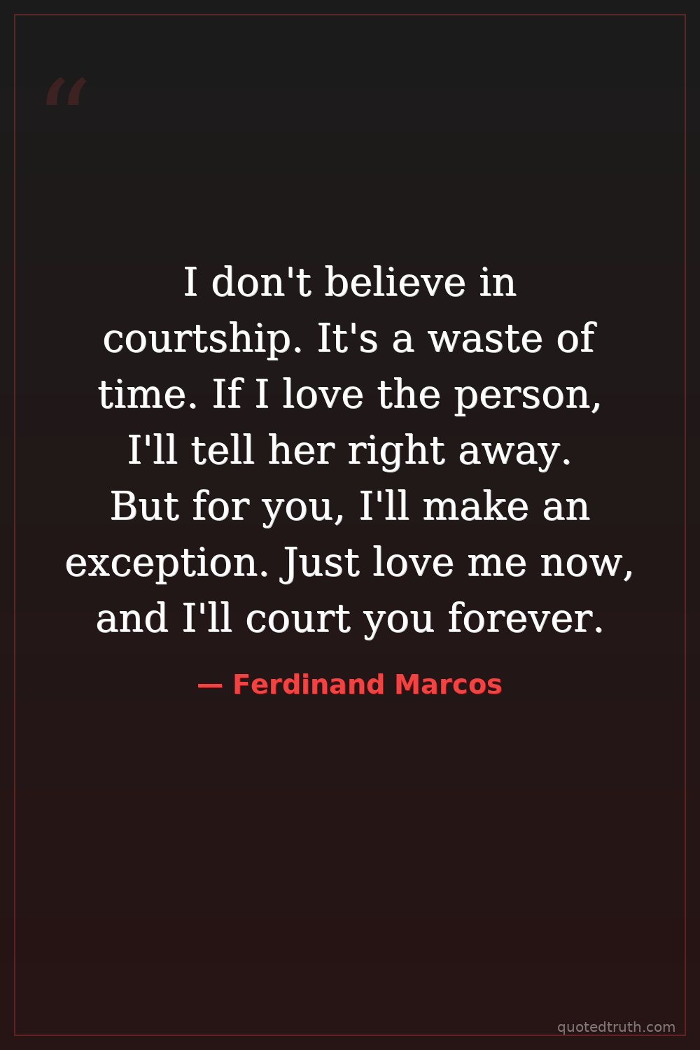 I don't believe in courtship. It's a waste of time. If I love the person, I'll tell her right away. But for you, I'll make an exception. Just love me now, and I'll court you forever.