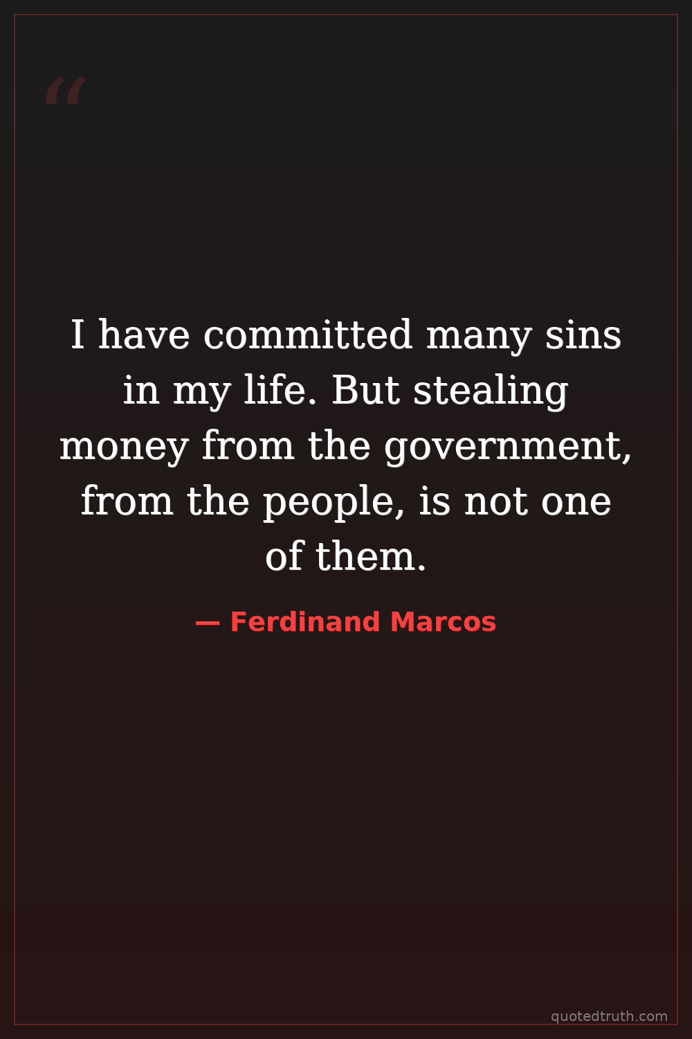 I have committed many sins in my life. But stealing money from the government, from the people, is not one of them.