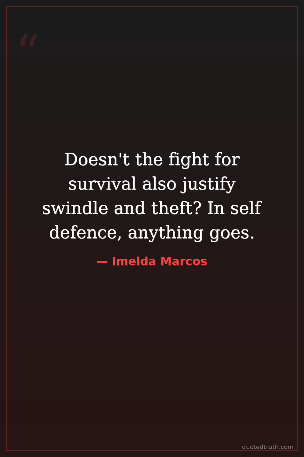 Doesn't the fight for survival also justify swindle and theft? In self defence, anything goes.