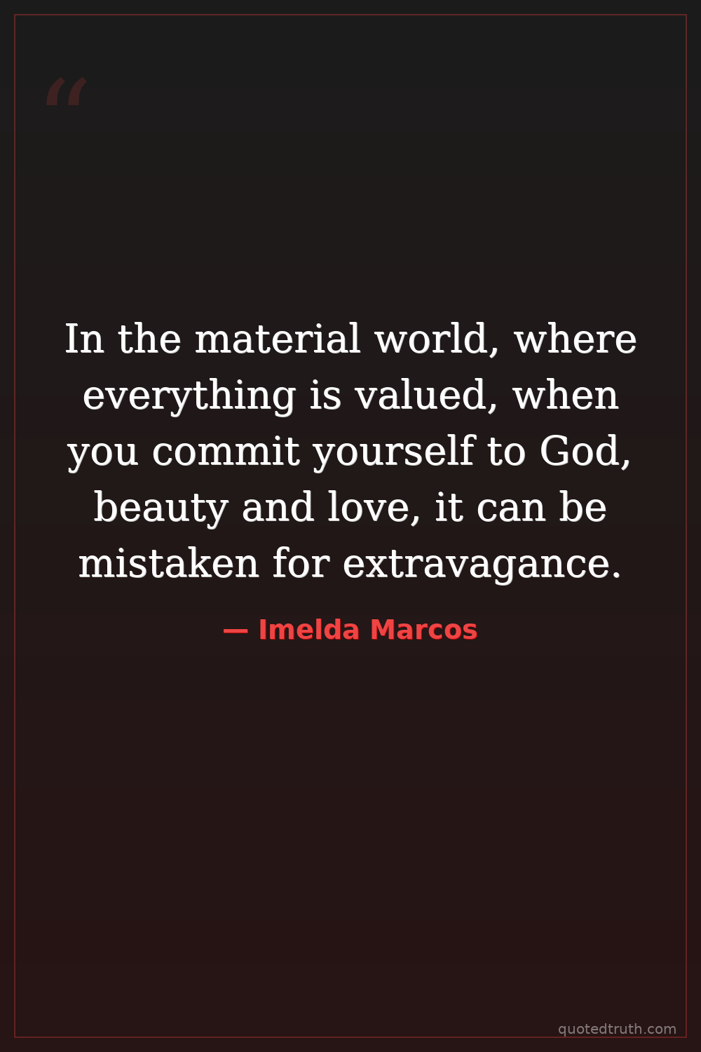 In the material world, where everything is valued, when you commit yourself to God, beauty and love, it can be mistaken for extravagance.