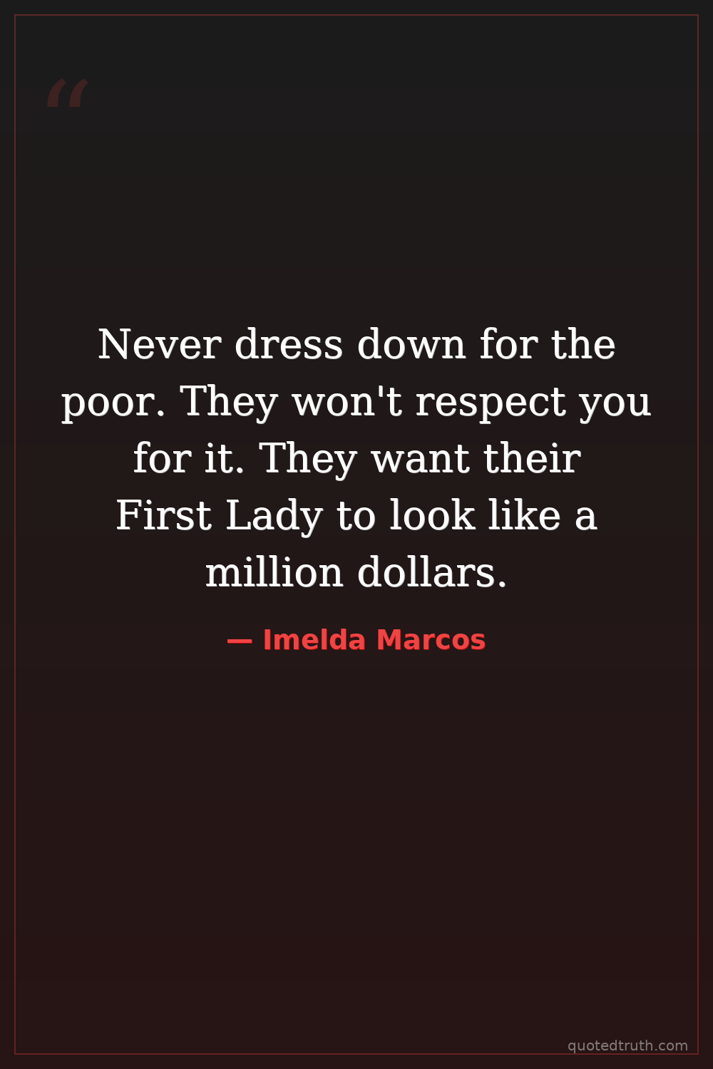 Never dress down for the poor. They won't respect you for it. They want their First Lady to look like a million dollars.