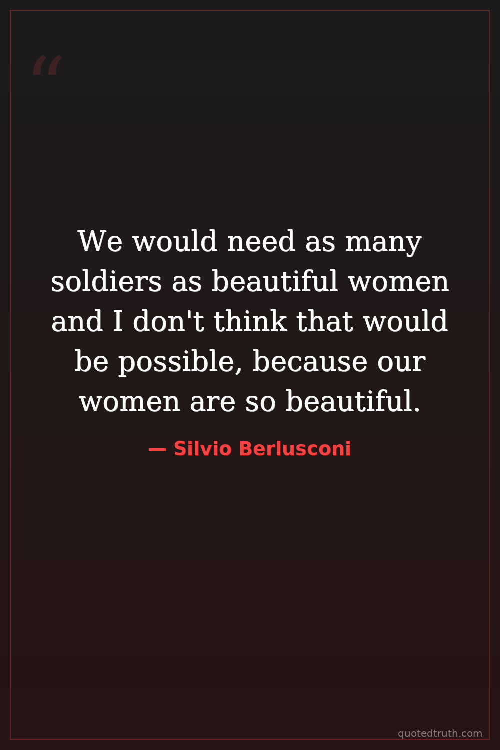 We would need as many soldiers as beautiful women and I don't think that would be possible, because our women are so beautiful.